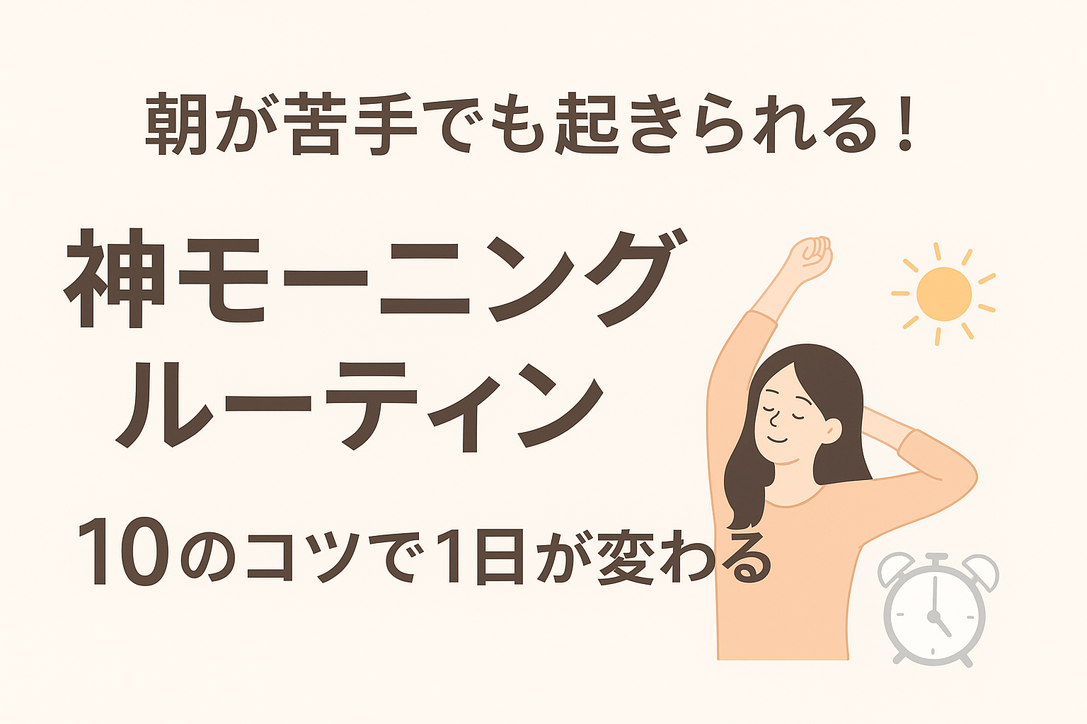 AI 朝が苦手でも起きられる!神モーニングルーティン10のコツで1日が変わる 2025年11月22日 AI 生活向上AI 朝に弱い。分かっていてもスヌーズを重ね、気付けば自己嫌悪——。そんな「朝の沼」から抜け出す鍵は、意志力ではなく設計です。ここでは、科学と生活 …