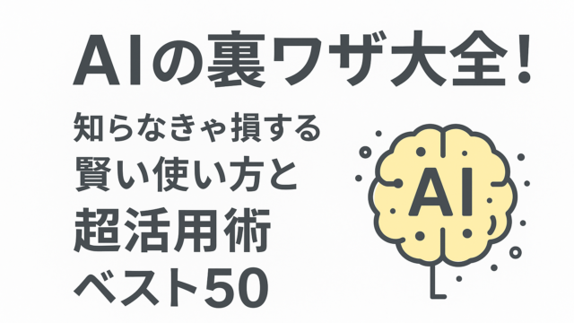 AI AIの裏ワザ大全!知らなきゃ損する賢い使い方と超活用術ベスト50 2025年12月12日 AI 生活向上AI AIをただの雑談相手にしていませんか?本稿は、現場で効くロングテールな裏ワザを50個、仕事・学習・創作・運用の4カテゴリに凝縮。プロンプトエ …