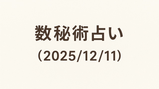 AI 数秘術占い(2025/12/11) 2025年12月11日 AI 生活向上AI 今日の数秘術占い(2025/12/11) こんにちは!今日は2025年12月11日。数秘術の視点から、今日の運勢を見ていきましょう。あなたの運気を活かすヒントやアドバイス、お楽しみ …