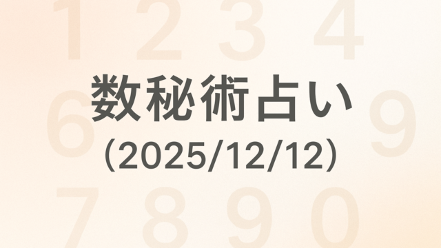 AI 数秘術占い(2025/12/12) 2025年12月12日 AI 生活向上AI 今日の数秘術占い(2025/12/12) 数秘術は古代から伝わる神秘的な学問で、数字を通じて私たちの運命や性格を読み解くことができます。今日は各数字が持つ特性を元に、2025年12 …