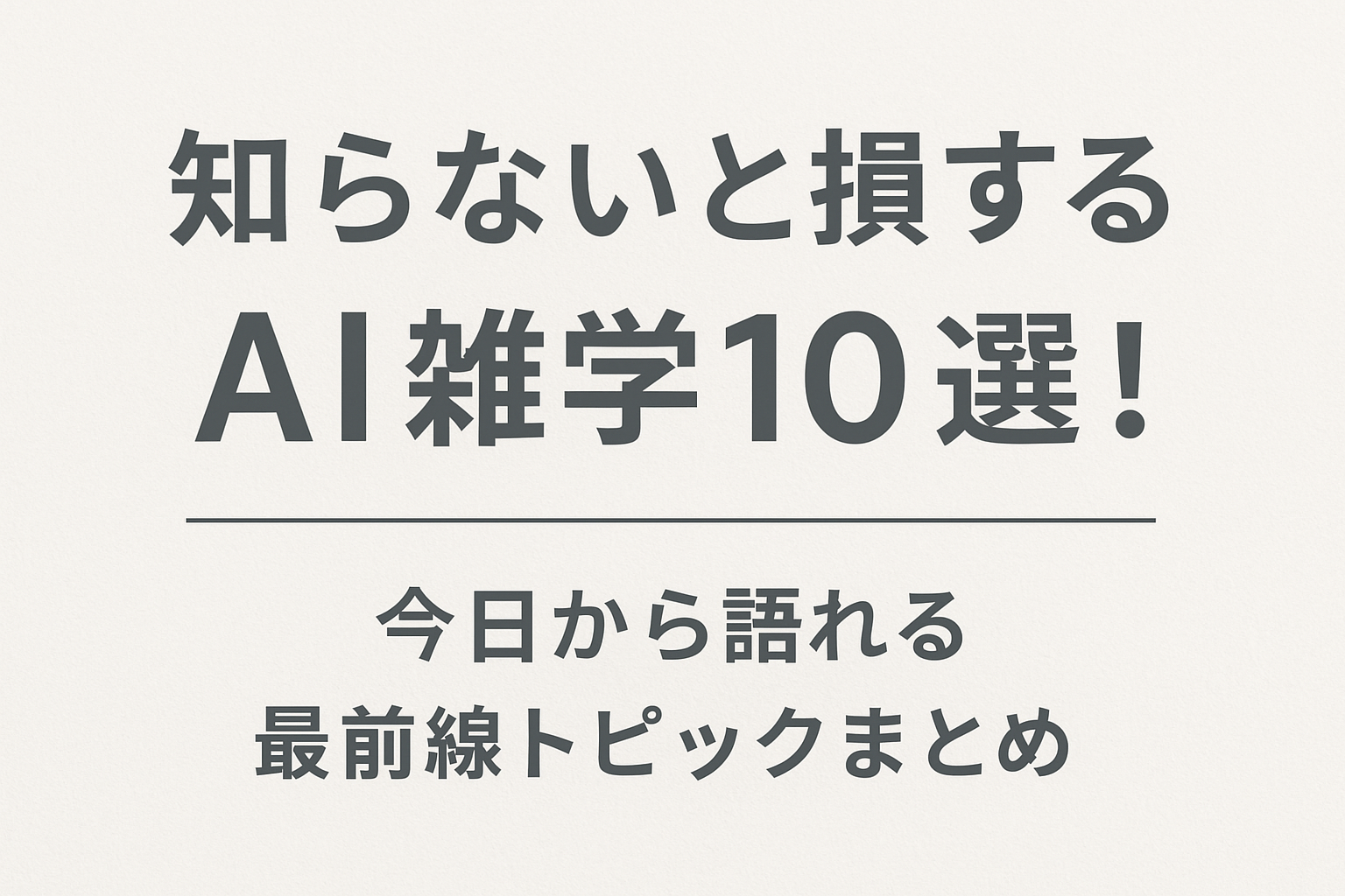 AIの話題は日々刷新され、知らないだけで設計ミスやコスト増につながる“落とし穴”も増えています。ここでは、今日から語れて実務にも刺さる最前線の雑学を10個に凝縮。流行語ではなく、現場で効く長期トレンドに絞りました。