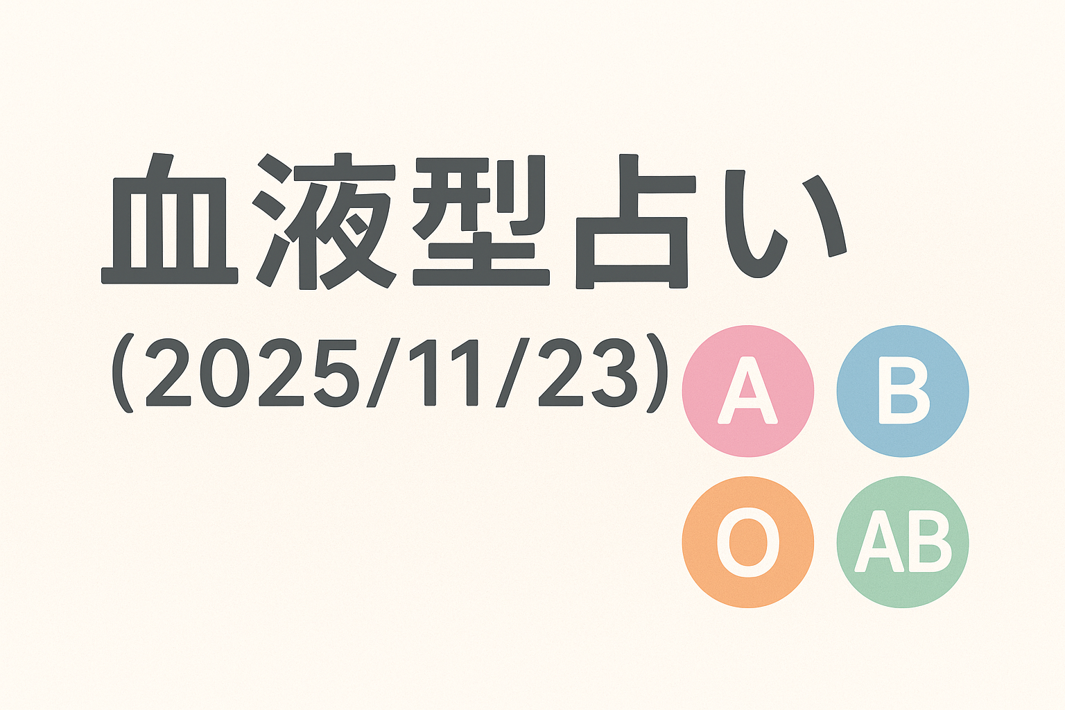 今日は2025年11月23日。今日のあなたの運勢はいかがでしょうか?血液型ごとに分けて占ってみますので、ぜひ参考にしてみてください。まずはランキング形式で発表しますね!