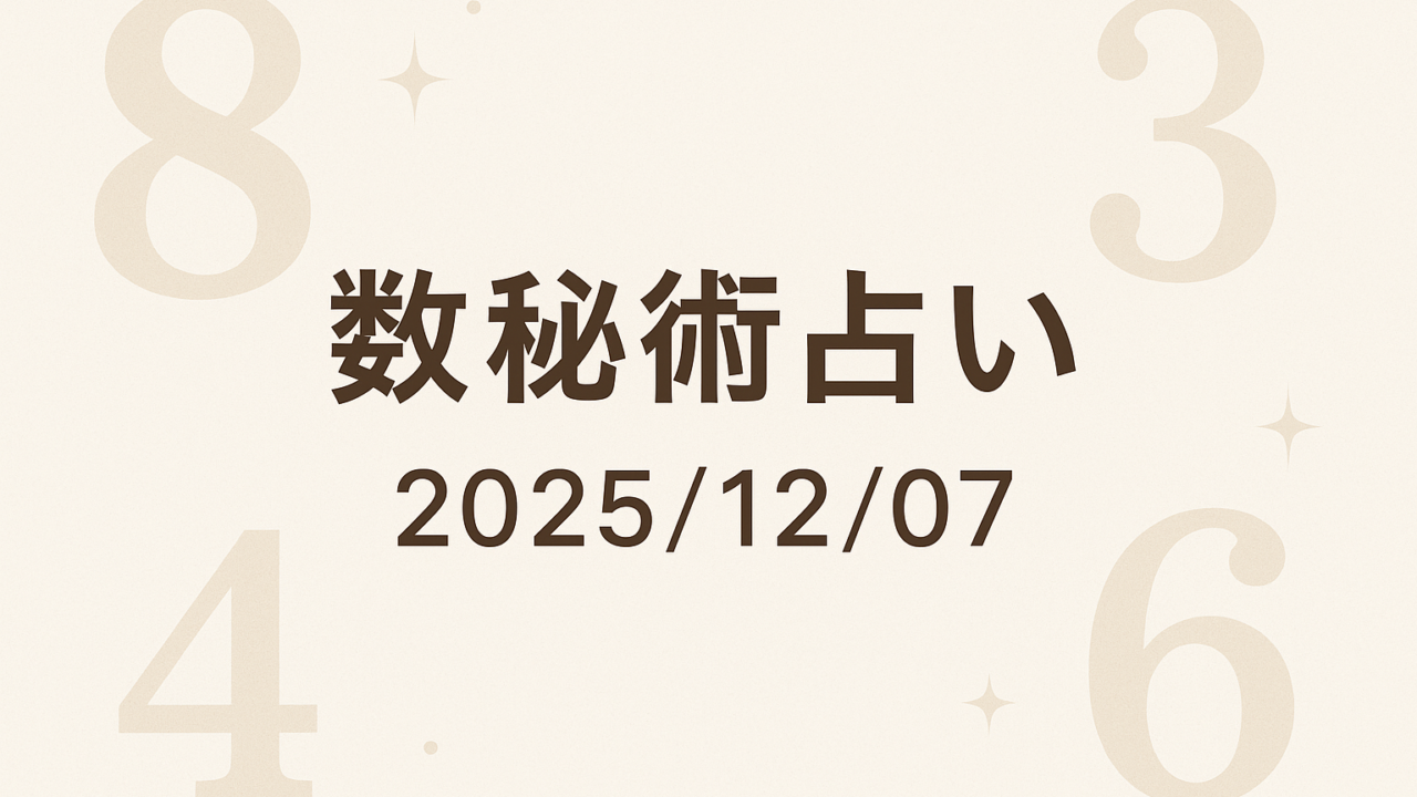 こんにちは!今日は2025年12月7日、数秘術による運勢をお届けします。数秘術では、生まれ持った数字があなたの性格や運勢に大きな影響を与えているとされています。それでは、1〜9までの数字ごとに、今日の運勢やアドバイスを見ていきましょう。