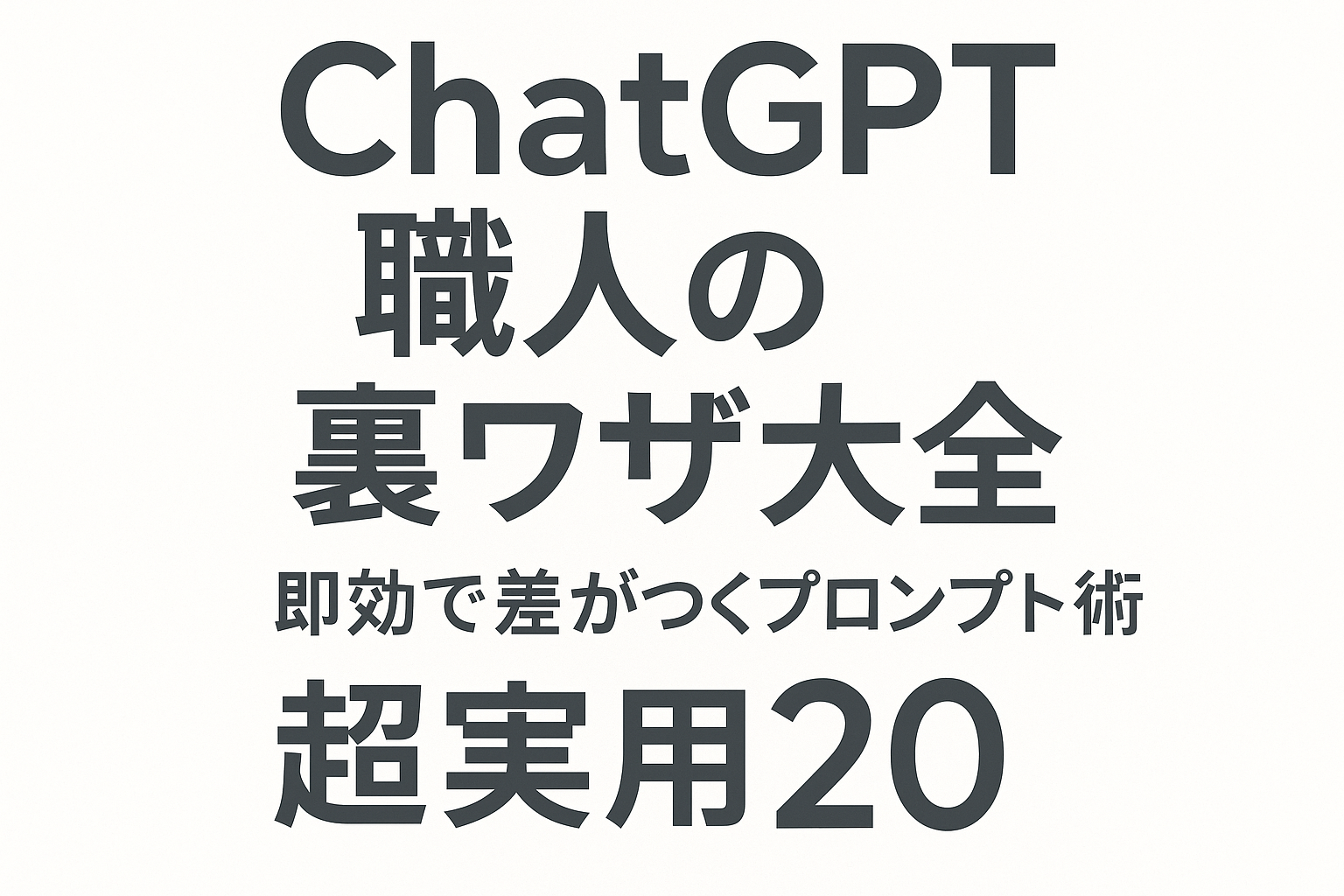 AI ChatGPT職人の裏ワザ大全:即効で差がつくプロンプト術・超実用20 2025年10月26日 AI 生活向上AI あなたのプロンプトは目的地を示し、道筋を敷き、仕上がりを担保できていますか?本稿は、即効で差がつく“実務ガチ勢”の裏ワザを20個に凝縮。評価 …