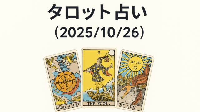 AI タロット占い(2025/10/26) 2025年10月26日 AI 生活向上AI 今日のタロット占い(2025/10/26) 今日は不思議な世界の扉が開かれる日です。タロットカードが語る物語に耳を傾けてみましょう。ランダムに引いた3枚のカードが、私たちの過去、現 …