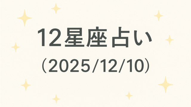 AI 12星座占い(2025/12/10) 2025年12月10日 AI 生活向上AI 今日の12星座占い(2025/12/10) 🌟 総合ランキング 1位:おうし座(運命の出会いが待っている) 2位:しし座(クリエイティブな才能が開花) 3位:てんび …