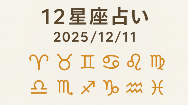 AI 12星座占い(2025/12/11) 2025年12月11日 AI 生活向上AI 今日の12星座占い(2025/12/11) 🌟 総合ランキング 1位:おうし座(充実した日々!スイートスポットに) 2位:てんびん座(新しい出会いが期待大!) 3位 …