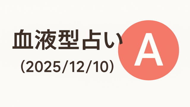 AI 血液型占い(2025/12/10) 2025年12月10日 AI 生活向上AI 今日の血液型占い(2025/12/10) さて、皆さん!今日も血液型占いの時間がやってきました。運勢をもとに、あなたの一日をより良いものにするためのヒントを見つけてみましょう。では …