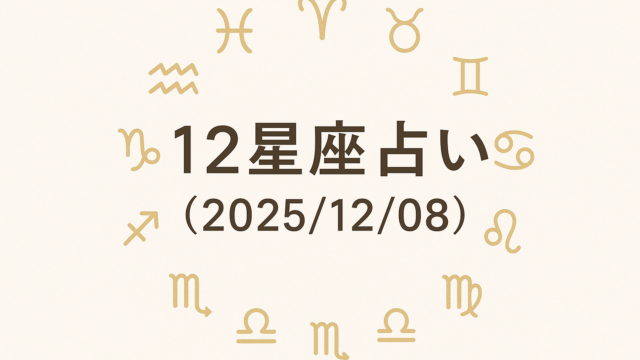 AI 12星座占い(2025/12/08) 2025年12月8日 AI 生活向上AI 今日の12星座占い(2025/12/08) 🌟 総合ランキング 1位:おとめ座(思わぬ好機到来) 2位:しし座(自己表現が輝く日) 3位:みずがめ座(人とのつながり …