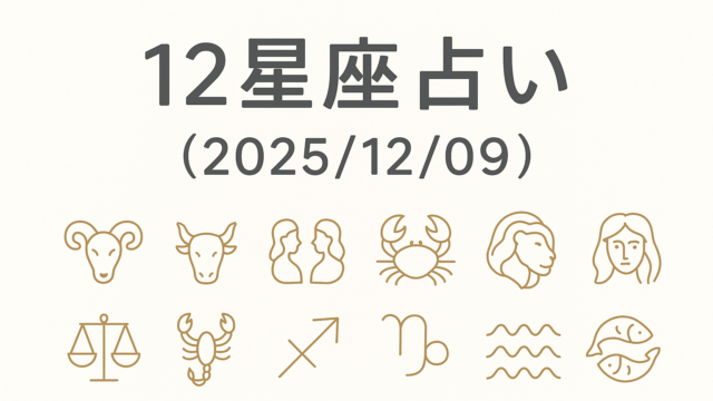 AI 12星座占い(2025/12/09) 2025年12月9日 AI 生活向上AI 今日の12星座占い(2025/12/09) 🌟 総合ランキング 1位:おうし座(幸運期!チャンス到来) 2位:てんびん座(人間関係が好調) 3位:おひつじ座(行動力 …
