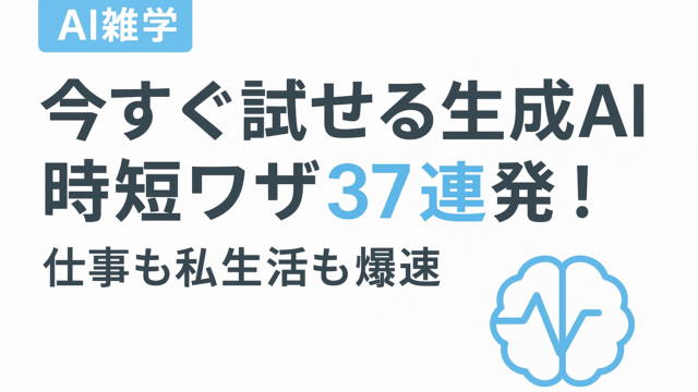 AI AI雑学|今すぐ試せる生成AI時短ワザ37連発!仕事も私生活も爆速 2025年12月8日 AI 生活向上AI AI雑学|今すぐ試せる生成AI時短ワザ37連発!仕事も私生活も爆速 生成AIは“万能魔法”ではなく、細かな作業摩擦を消す実用ツール。ここでは …