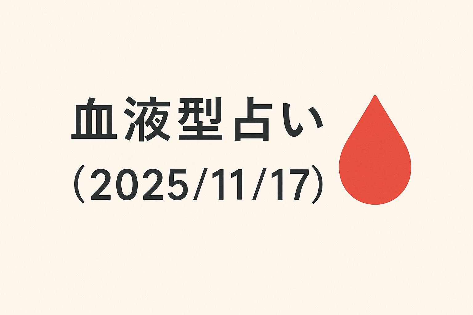 AI 血液型占い(2025/11/17) 2025年11月17日 AI 生活向上AI 今日の血液型占い(2025/11/17) 今日の運勢を血液型別にランキング形式でお届けします!恋愛、金運、仕事、健康について詳しく見ていきましょう。自分の血液型をチェックして、運勢 …