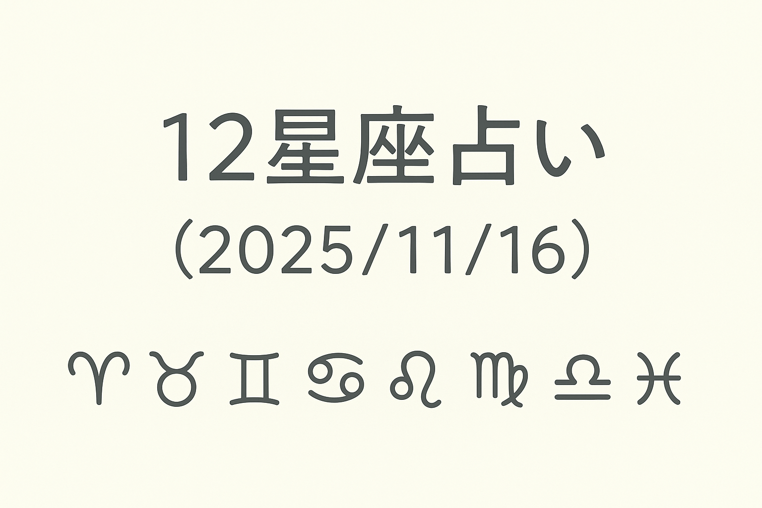 AI 12星座占い(2025/11/16) 2025年11月16日 AI 生活向上AI 今日の12星座占い(2025/11/16) 🌟 総合ランキング 1位:おうし座(幸運期!チャンス到来) 2位:てんびん座(人間関係が好調) 3位:しし座(クリエイテ …