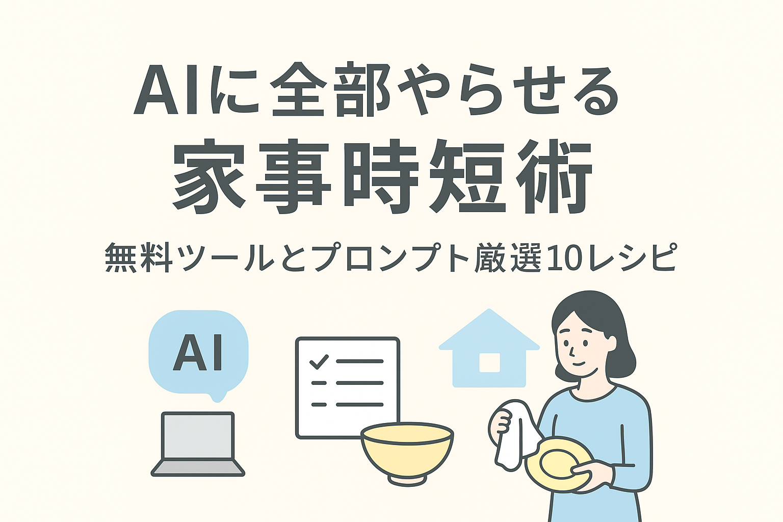 AI AIに全部やらせる家事時短術、無料ツールとプロンプト厳選10レシピ 2025年11月14日 AI 生活向上AI AIに全部やらせる家事時短術、無料ツールとプロンプト厳選10レシピ 忙しいのに家事は待ってくれない——だからこそ、AIと無料ツールで“ゼロク …