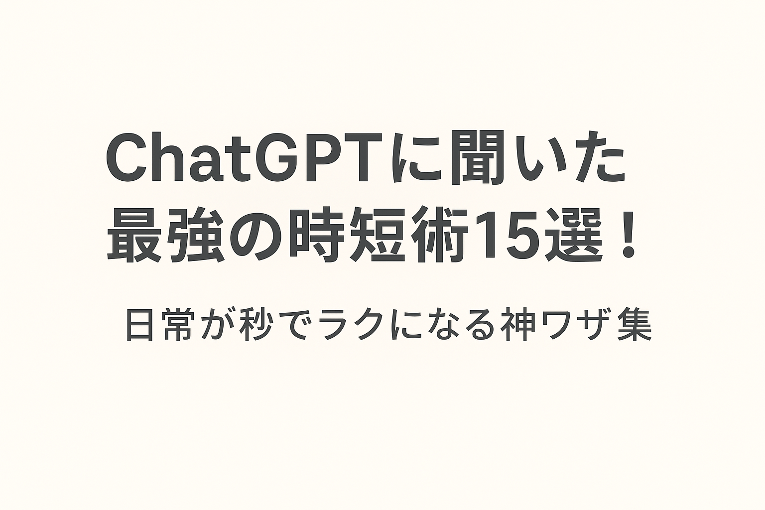 AI ChatGPTに聞いた最強の時短術15選!日常が秒でラクになる神ワザ集 2025年11月15日 AI 生活向上AI 忙しいのにやることが減らない——その原因は小さな“摩擦”の積み重ね。ここではChatGPTが厳選した、暮らしと仕事を一気に軽くする時短術15 …