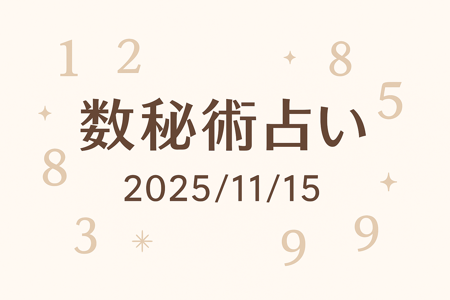 AI 数秘術占い(2025/11/15) 2025年11月15日 AI 生活向上AI 今日の数秘術占い(2025/11/15) こんにちは、数秘術の世界へようこそ!今日は2025年11月15日。数秘術によって、あなたの運勢を紐解いていきましょう。1〜9までの数字がそ …