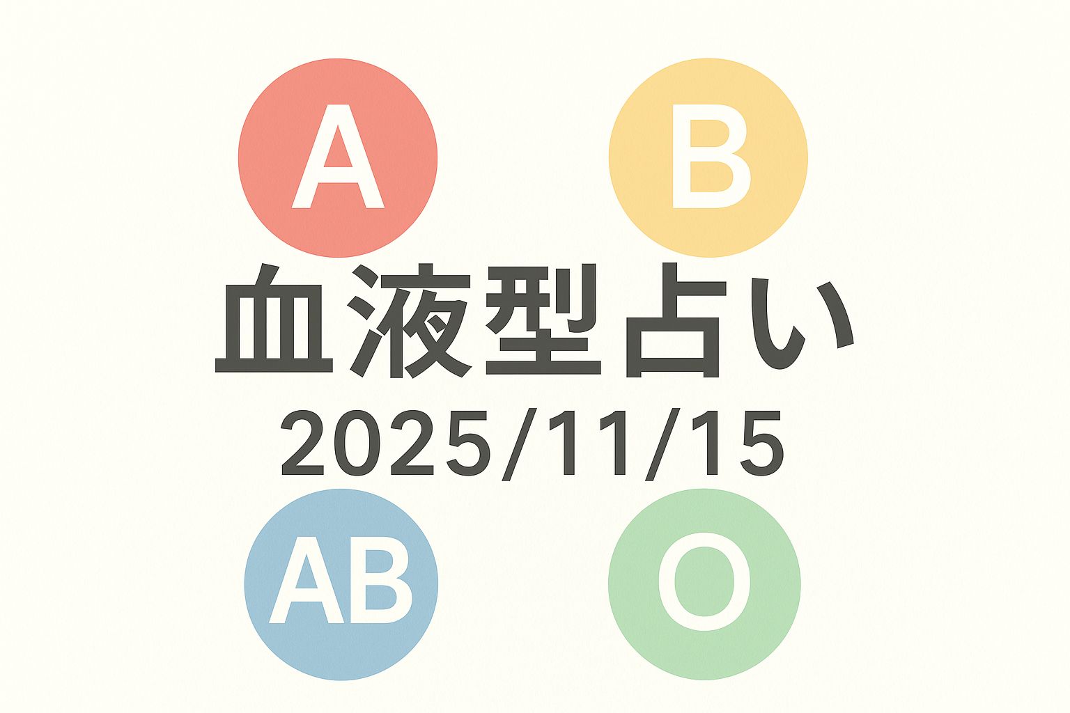 AI 血液型占い(2025/11/15) 2025年11月15日 AI 生活向上AI 今日の血液型占い(2025/11/15) さて、皆さん!今日は2025年11月15日の血液型占いをお届けします。今日はどの血液型が素晴らしい一日を迎えるのでしょうか?それでは早速、 …