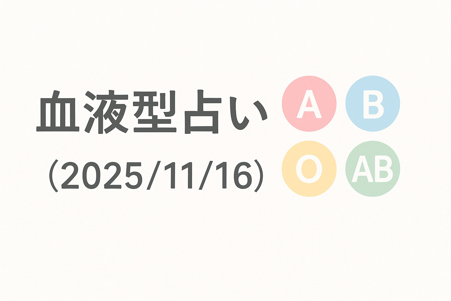 AI 血液型占い(2025/11/16) 2025年11月16日 AI 生活向上AI 今日の血液型占い(2025/11/16) 皆さん、こんにちは!今日は2025年11月16日の血液型占いをお届けします。運勢を知ることで、より充実した一日を過ごせるかもしれませんよ。 …