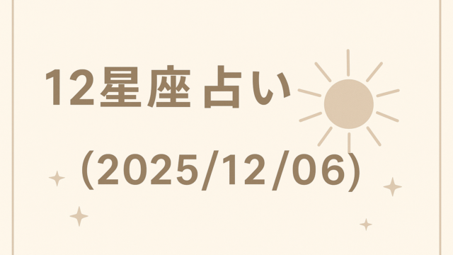AI 12星座占い(2025/12/06) 2025年12月6日 AI 生活向上AI 今日の12星座占い(2025/12/06) 🌟 総合ランキング 1位:おうし座(ポジティブなエネルギーに満ちている!) 2位:てんびん座(愛の波に乗れる日) 3位: …