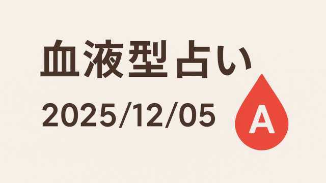 AI 血液型占い(2025/12/05) 2025年12月5日 AI 生活向上AI 今日の血液型占い(2025/12/05) こんにちは!今日も皆さんのために血液型占いをお届けします。毎日様々な運勢が変わる中で、あなたの血液型に合ったアドバイスを見つけて、より良い …