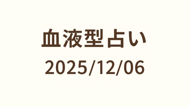 AI 血液型占い(2025/12/06) 2025年12月6日 AI 生活向上AI 今日の血液型占い(2025/12/06) こんにちは!今日も血液型占いの時間がやってきました。それぞれの血液型に合わせた運勢をお届けします。さあ、どの血液型が一番良い運勢を持ってい …